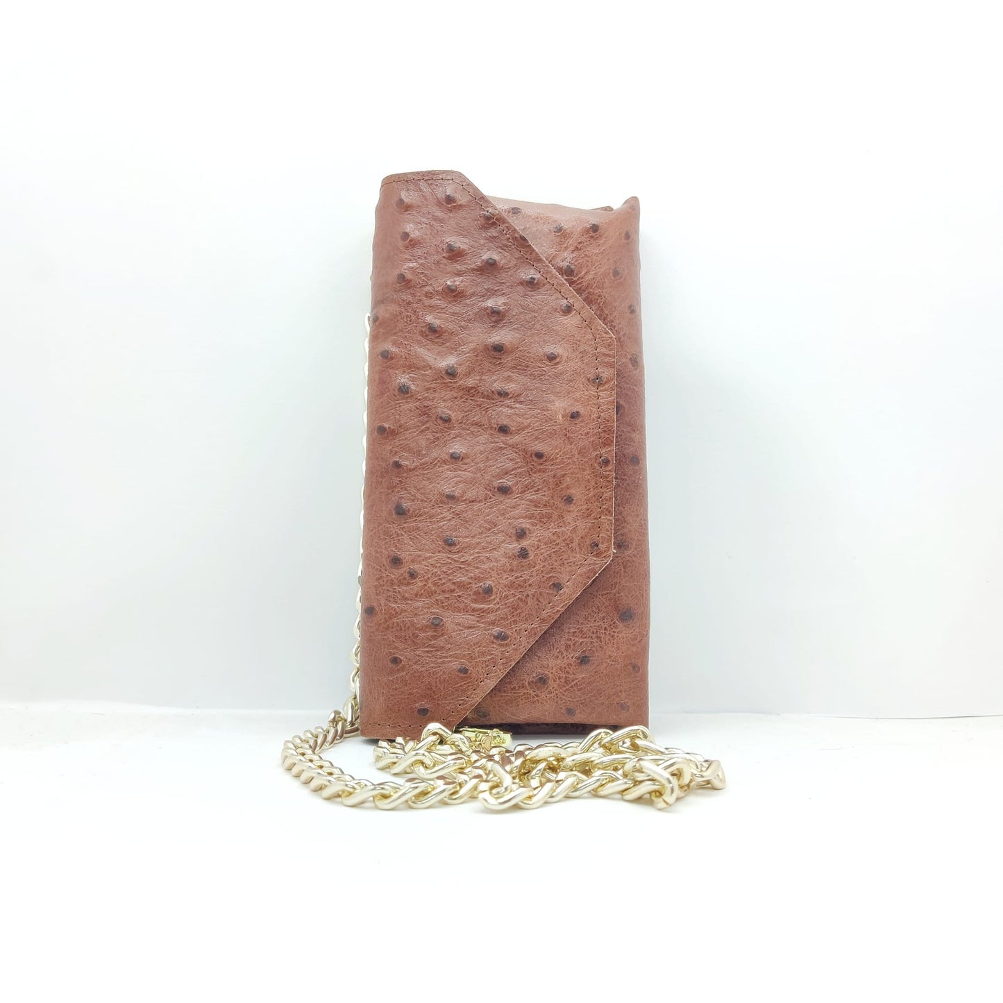 Equipped with a gold-colored chain to transform it into a clutch bag.